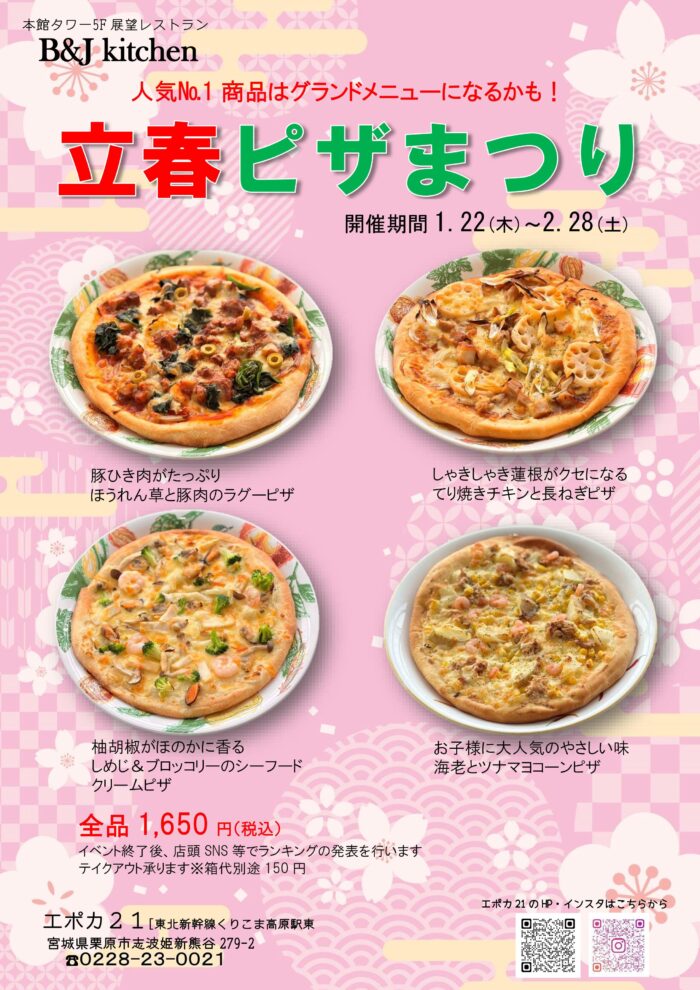 5階展望レストラン『B&Jキッチン』より立春ピザまつりのお知らせです。